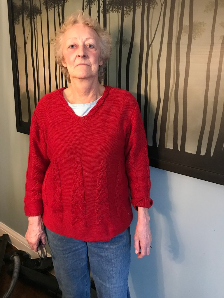 Anne is 78-years-old, but looks significantly younger. She is tidy and well-kept, wearing relaxed jeans and a bright sweater, and her deep blue eyes are enhanced with just a touch of makeup. Despite her age, her face has remarkably few lines, and her expression is alert and lively. Still, a touch of sadness tinges her expression, which is most evident in the downward turn of her mouth.